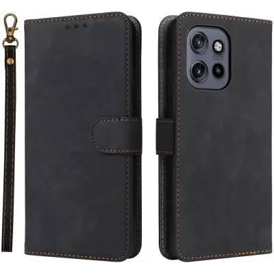 Phonesta Vintage Skin Book Wallet Klapphülle für Motorola Edge 60 Neo/Edge 50 Neo / ThinkPhone 25 - Schwarz