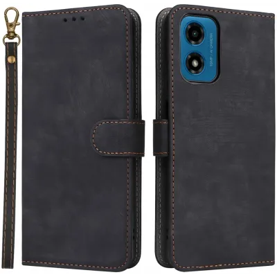 • Phonesta Vintage Skin Book Wallet Klapphülle für Motorola Moto G04 / G04s / G24 / G24 Power / E14 - Schwarz