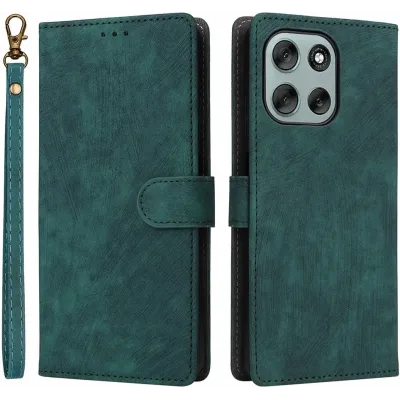Phonesta Vintage Skin Book Wallet Klapphülle für Motorola Moto G56 - Grün