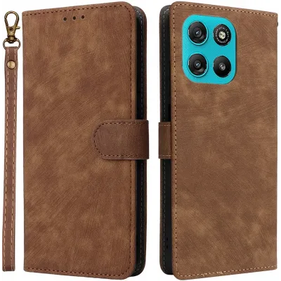 Phonesta Vintage Skin Book Wallet Klapphülle für Motorola Moto G57 Power - Braun