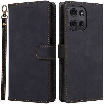 Phonesta Vintage Skin Book Wallet Klapphülle für Motorola Moto G75 - Schwarz