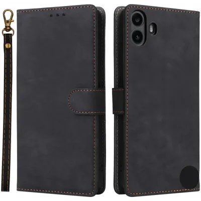 • Phonesta Vintage Skin Book Wallet Klapphülle für Nothing CMF Phone 1 - Schwarz