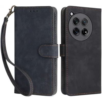 Phonesta Vintage Skin Book Wallet Klapphülle für OnePlus 12R - Schwarz