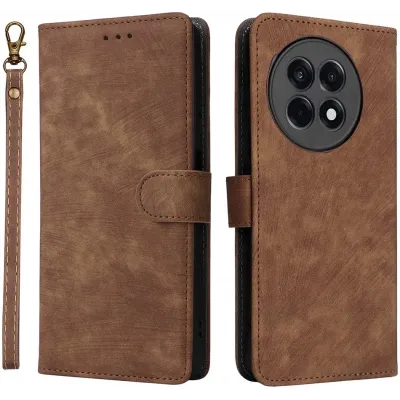 • Phonesta Vintage Skin Book Wallet Klapphülle für OnePlus 13R - Braun