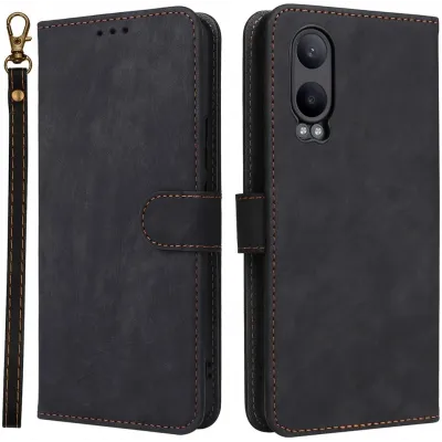 • Phonesta Vintage Skin Book Wallet Klapphülle für OnePlus Nord CE 4 Lite - Schwarz