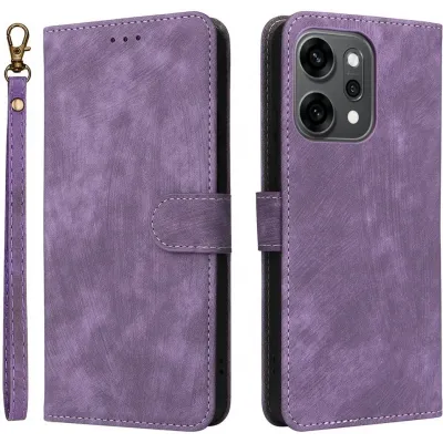 • Phonesta Vintage Skin Book Wallet Klapphülle für Oppo Reno14 - Lila