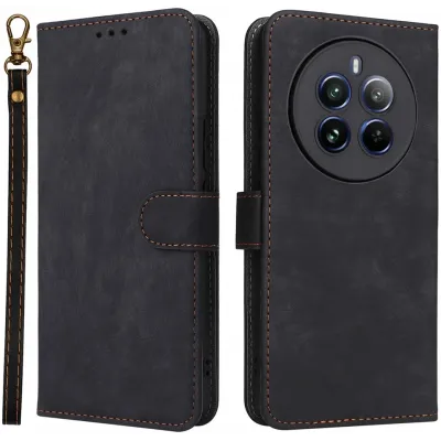 Phonesta Vintage Skin Book Wallet Klapphülle für Realme 12 Pro/12 Pro Plus - Schwarz