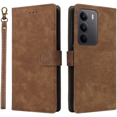 • Phonesta Vintage Skin Book Wallet Klapphülle für Realme 14x / C75 - Braun