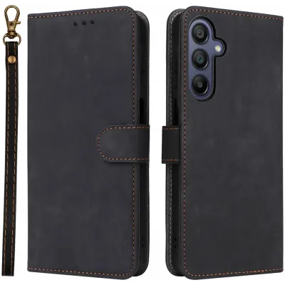 • Phonesta Vintage Skin Book Wallet Klapphülle für Samsung Galaxy A16 - Schwarz