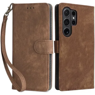 Phonesta Vintage Skin Book Wallet Klapphülle für Samsung Galaxy S24 Ultra - Braun