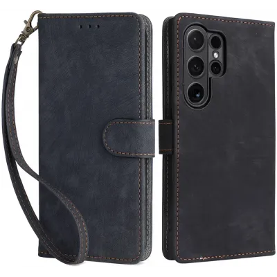 Phonesta Vintage Skin Book Wallet Klapphülle für Samsung Galaxy S24 Ultra - Schwarz