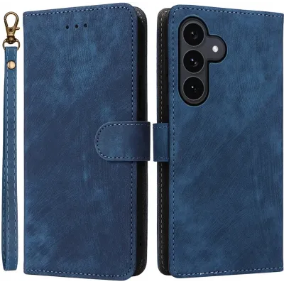 Phonesta Vintage Skin Book Wallet Klapphülle für Samsung Galaxy S25 FE - Blau