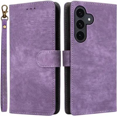 Phonesta Vintage Skin Book Wallet Klapphülle für Samsung Galaxy S25 FE - Lila