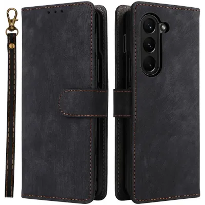 Phonesta Vintage Skin Book Wallet Klapphülle für Samsung Galaxy Z Fold 6 - Schwarz