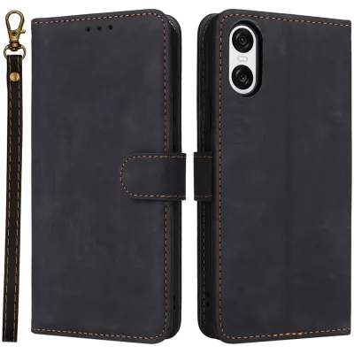 Phonesta Vintage Skin Book Wallet Klapphülle für Sony Xperia 10 VI - Schwarz