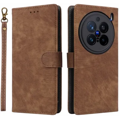 Phonesta Vintage Skin Book Wallet Klapphülle für Vivo X200 Pro - Braun