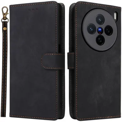 Phonesta Vintage Skin Book Wallet Klapphülle für Vivo X200 - Schwarz