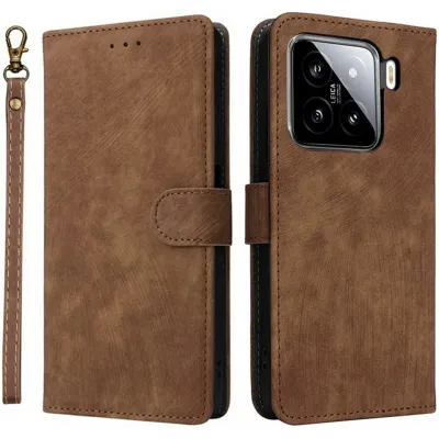 • Phonesta Vintage Skin Book Wallet Klapphülle für Xiaomi 15 - Braun