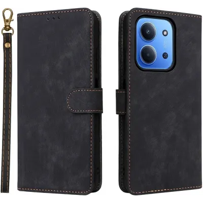 • Phonesta Vintage Skin Book Wallet Klapphülle für Xiaomi Redmi 15C / Xiaomi Poco C85 - Schwarz